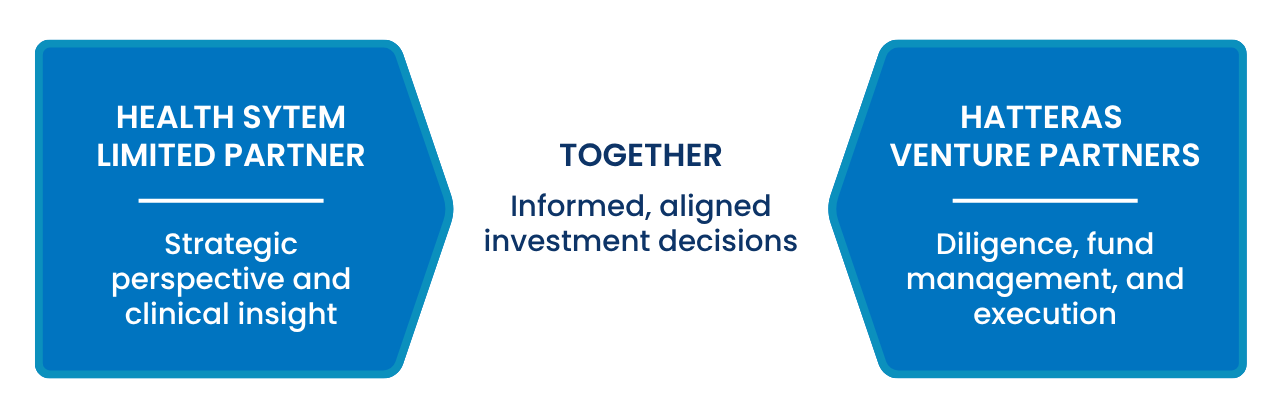 Health systems will actively shape the fund’s investment strategy. Partners will participate in regular investment discussions, contribute clinical insights, and help validate technologies that align with their priorities – while Hatteras manages all operations, diligence, and execution details.